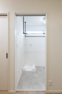>>実際に、11月に完成見学会を開催したお家は、洗濯室の一部の壁にエコカラットが採用されていました!